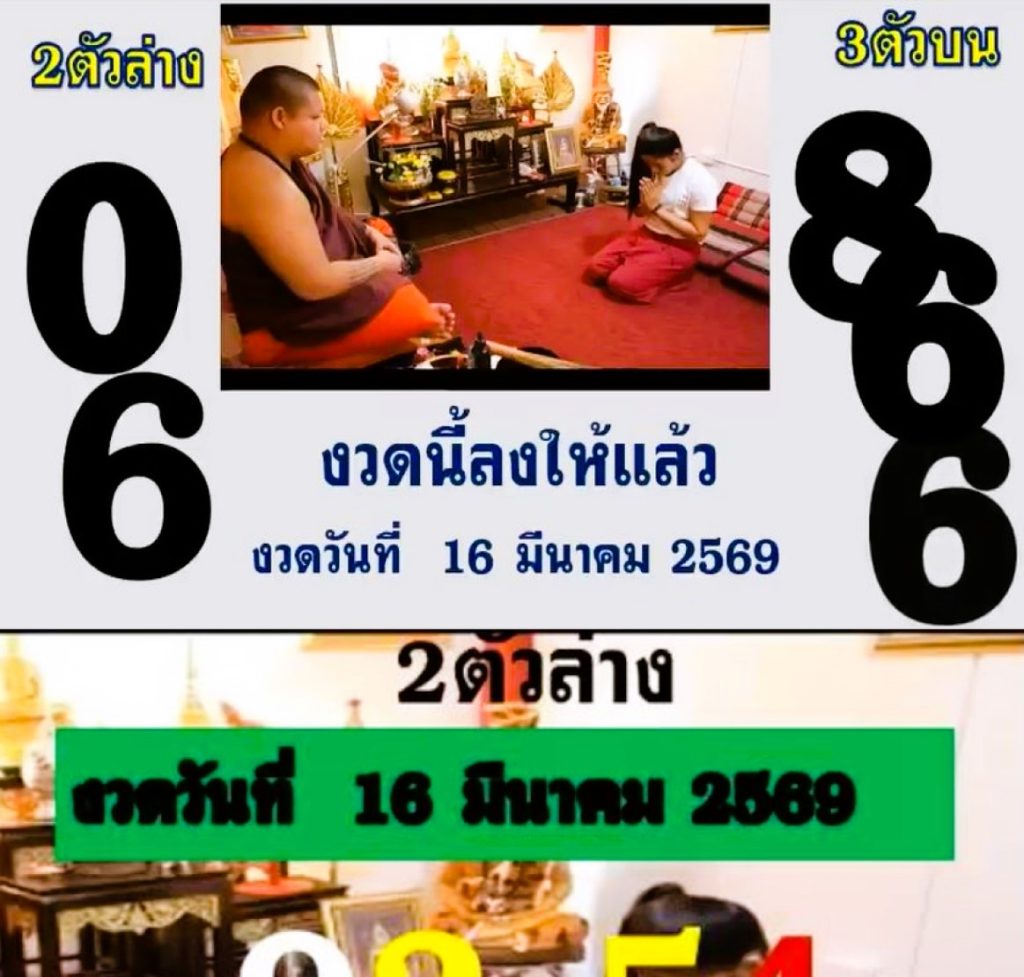 หว ยเ ด็ด เ ม็ ดเ ดี ยว 2- 3 ตั วบ น ล่ าง งวด วัน ที่ 16/03/69